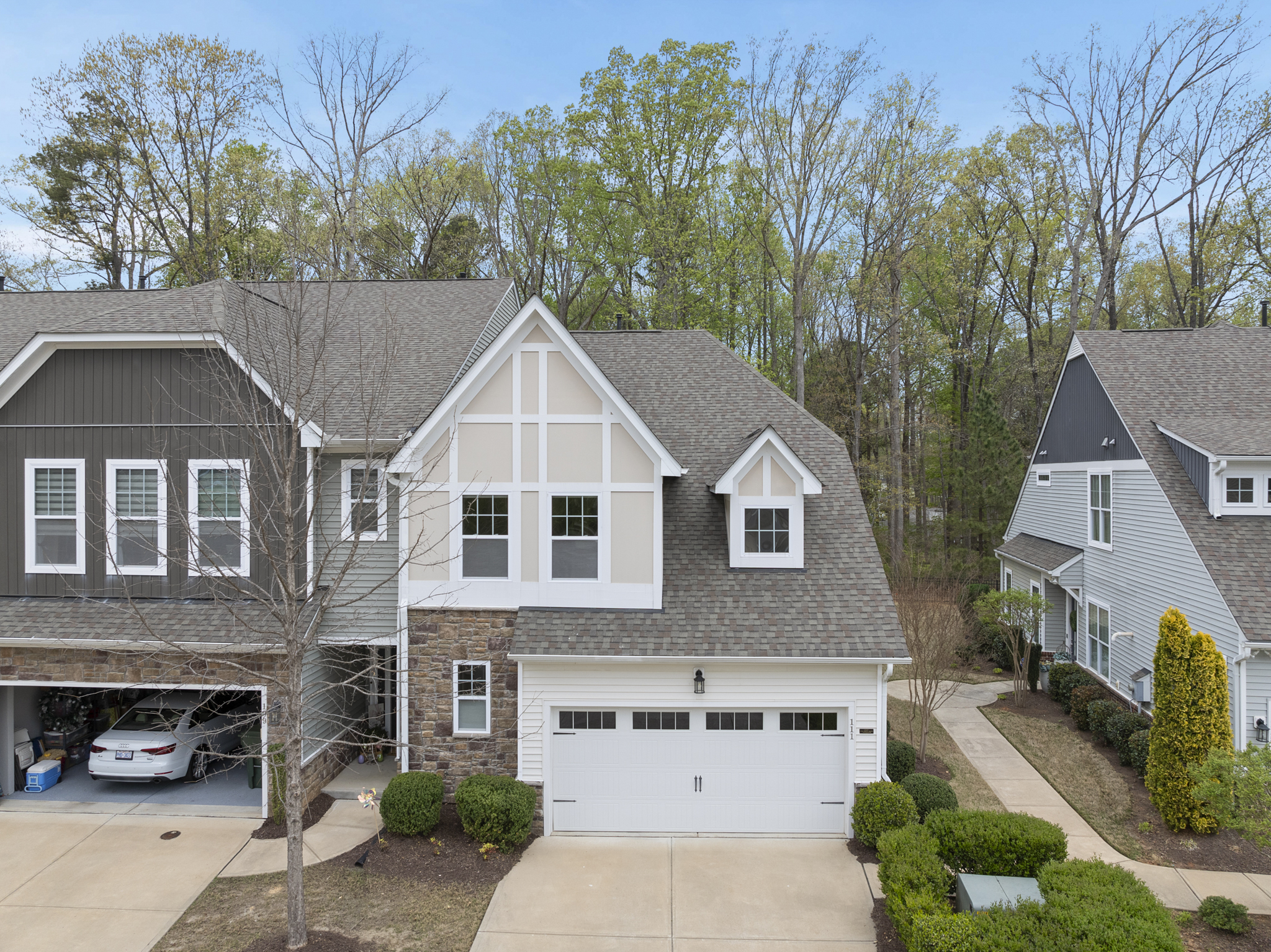 Incredible End-Unit Townhome with 2 Car Garage in a prime Cary location! Conveniently located near Highway 54, Harrison Avenue, and Park West Village, offering easy access to premier shopping, dining, and entertainment. This home has been beautifully upgraded, featuring a smart thermostat and lock, along with new cellular shades for added convenience. Step inside to an open floorplan designed for comfort and functionality. The gourmet kitchen is a chef's dream, boasting stainless steel appliances, a spacious island, and a brand-new Bosch dishwasher (installed 11/2023.) The adjacent dining area flows seamlessly into the spacious living room, which offers the perfect spot for relaxation with its cozy fireplace. The main level guest suite is a true retreat, featuring a walk-in closet and an ensuite bath with a walk-in shower-- ideal for visitors or multi-generational living. Upstairs, the luxurious primary suite features a spa-like ensuite with soaking tub, walk in shower, and spacious walk in closet. A loft sitting area offers additional space for a home office, media room, or relaxation area. Two more generously sized bedrooms complete the second level, connected by a shared full bath. Enjoy outdoor living on the covered porch, which overlooks the private backyard - a great space for morning coffee or evening unwinding. With new upgrades throughout, this home is truly move-in ready and offers an unbeatable combination of style, comfort, and convenience. Don't miss this incredible opportunity!