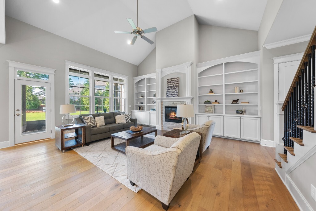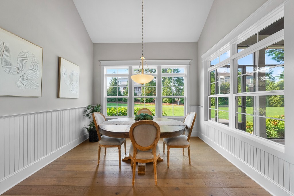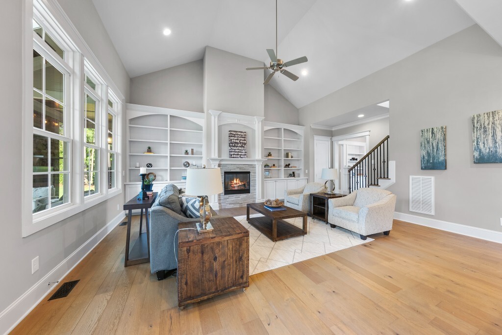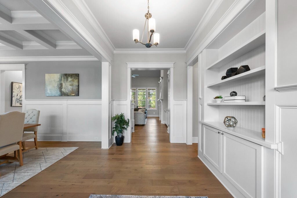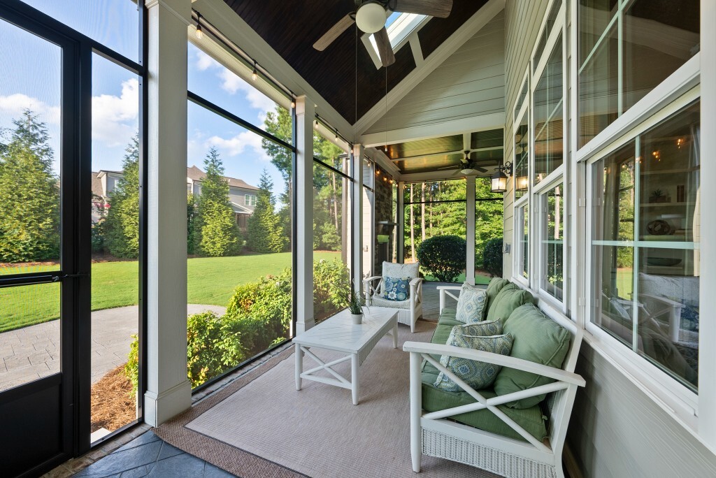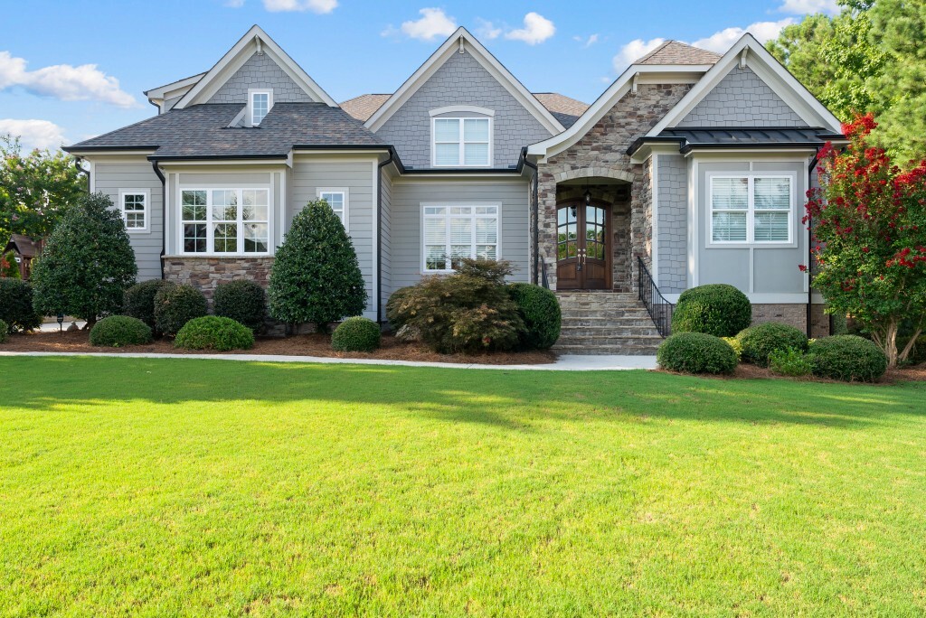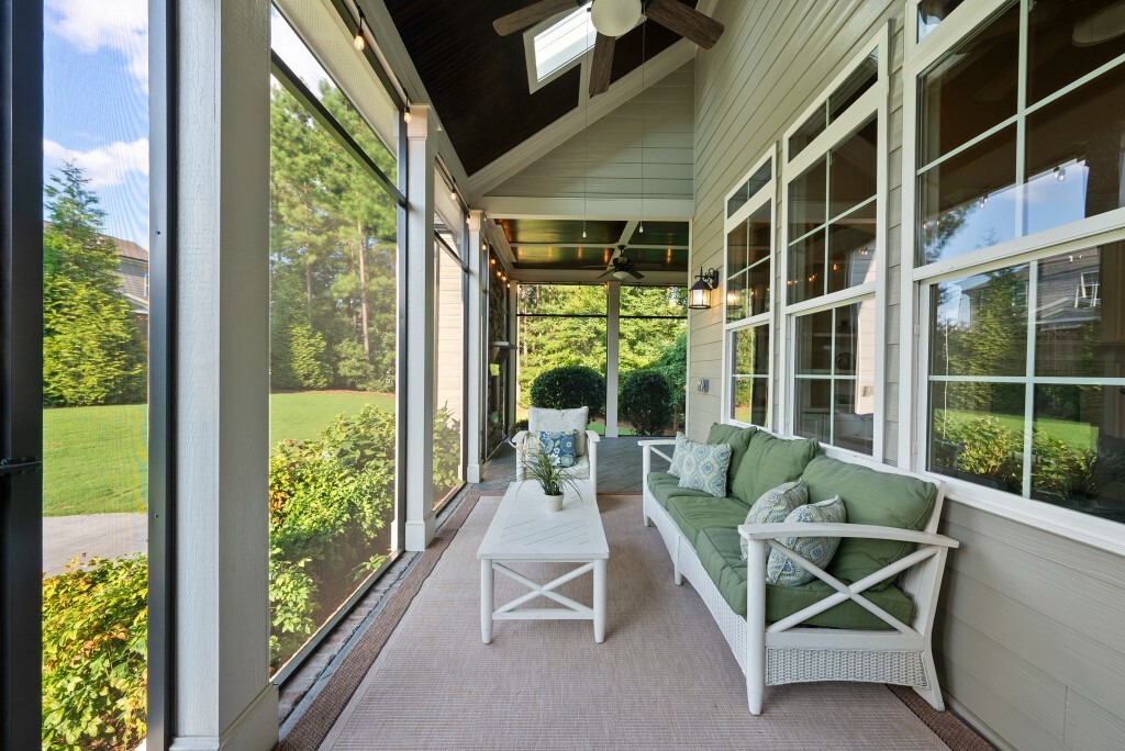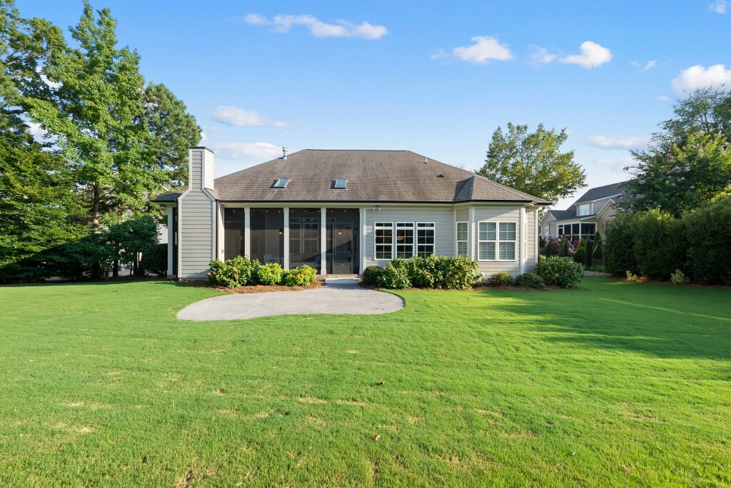 Step into luxury living in the Stonewater community of Wake Forest—an upscale enclave featuring custom-built homes on generous wooded lots. The exterior boasts stone accents, crisp architectural lines, and manicured landscaping, creating exemplary curb appeal. Inside, stunning hardwood flooring, crisp trim work, coffered ceilings, wainscoting, and built‑ins elegantly frame formal and casual space. The formal dining room impresses with abundant natural light, fine millwork, and chandelier lighting—perfect for hosting special gatherings. Also featured is a dedicated home office or study with serene views, ideal for remote work or quiet reflection. The expansive great room showcases built-ins flanking a gas fireplace, cathedral ceilings, and abundant natural light—designed to be the heart of the home. Nearby, a practical mudroom/drop‑zone with bench and cubbies offers smart storage solutions for busy family life. Experience seamless indoor-outdoor living with a screened porch that includes vaulted ceilings, ceiling fans, and an outdoor fireplace—overlooking a lush, private backyard perfect for year-round relaxing and entertaining. Within Stonewater, residents enjoy a wealth of amenities: a community pool, clubhouse, fully equipped fitness center, playground, and tranquil pond and greenway trails that connect throughout the neighborhood. The neighborhood offers easy access to: Major routes like US‑1, with commuting times to downtown Wake Forest (≈5 min), Raleigh (≈30 min), and RTP or RDU (≈30-35 min). Nearby attractions such as Falls Lake, E. Carroll Joyner Park, and nearby shopping/dining at Heritage and Wake Forest Crossing.