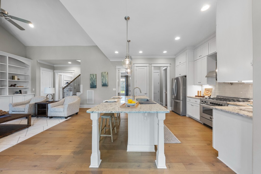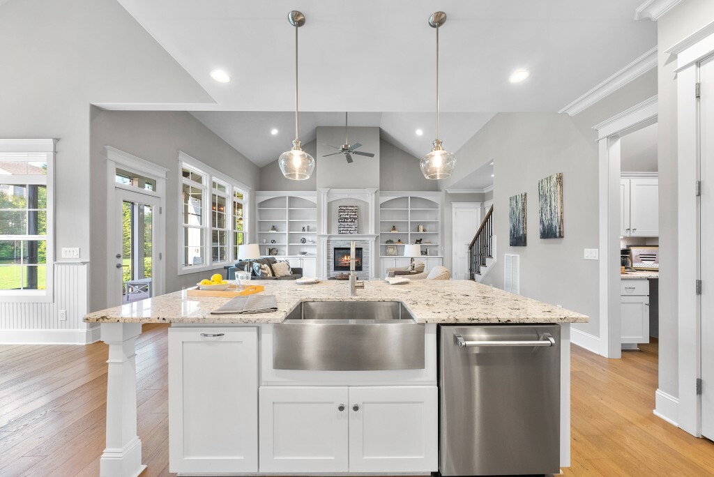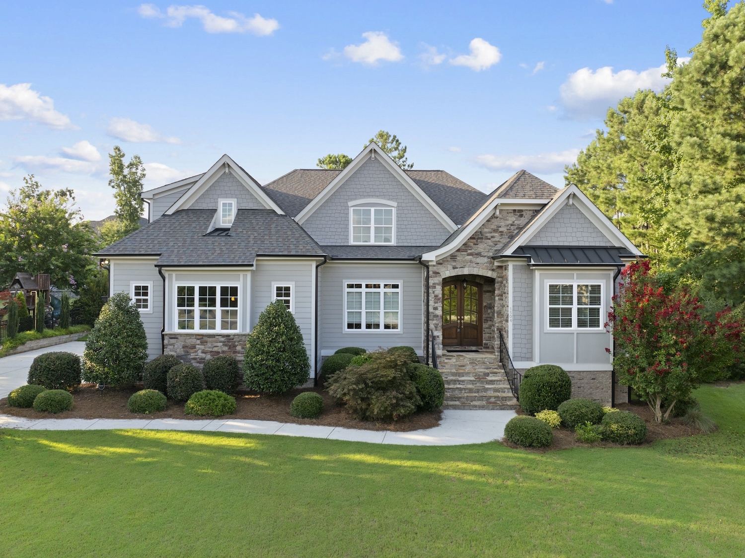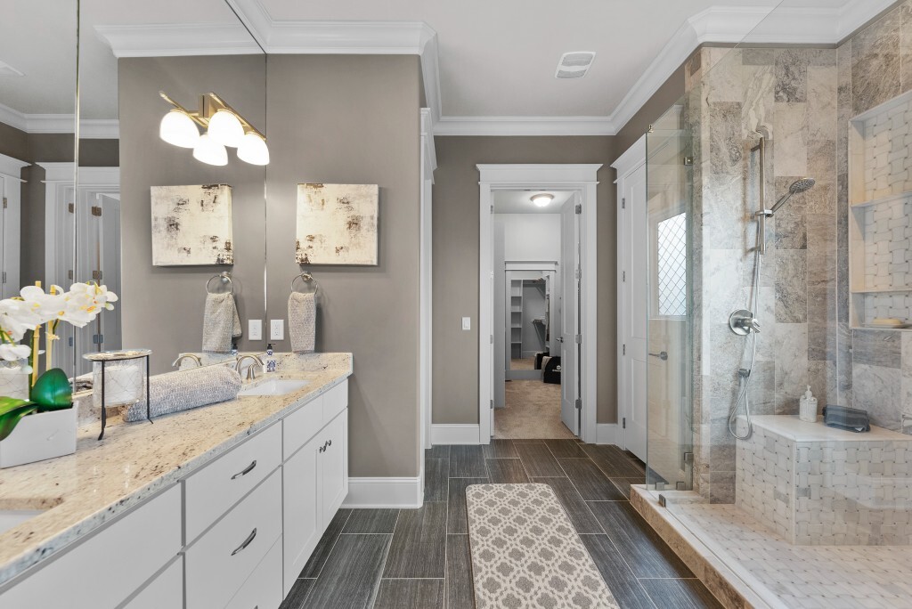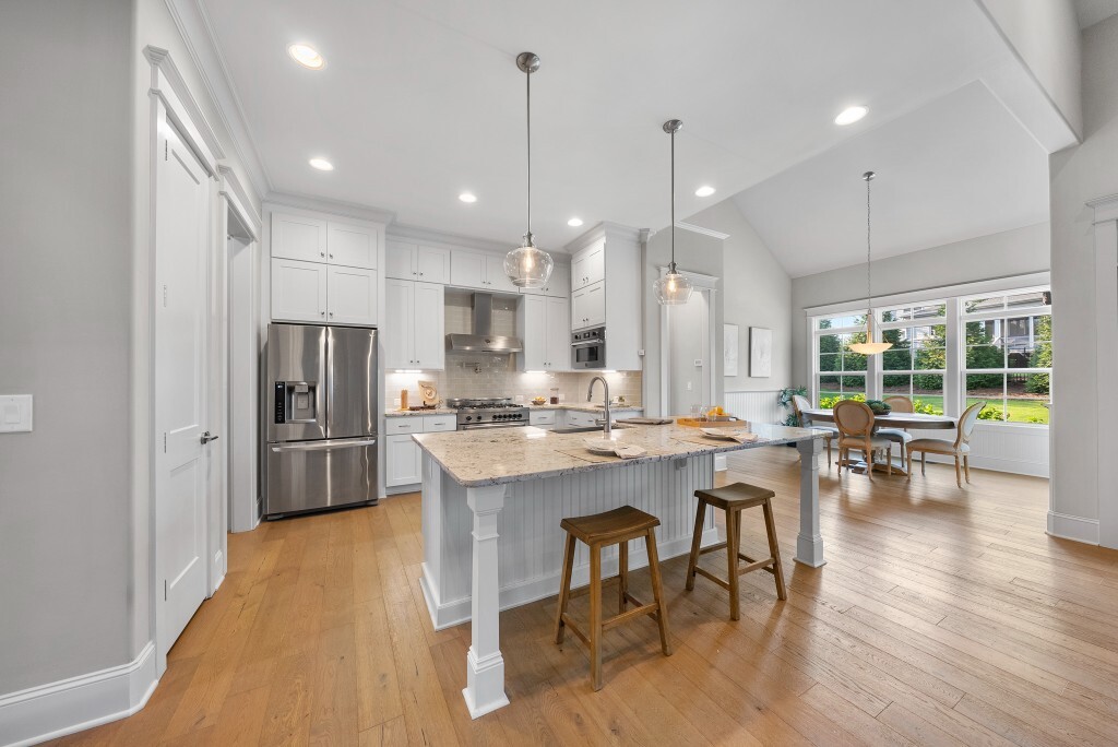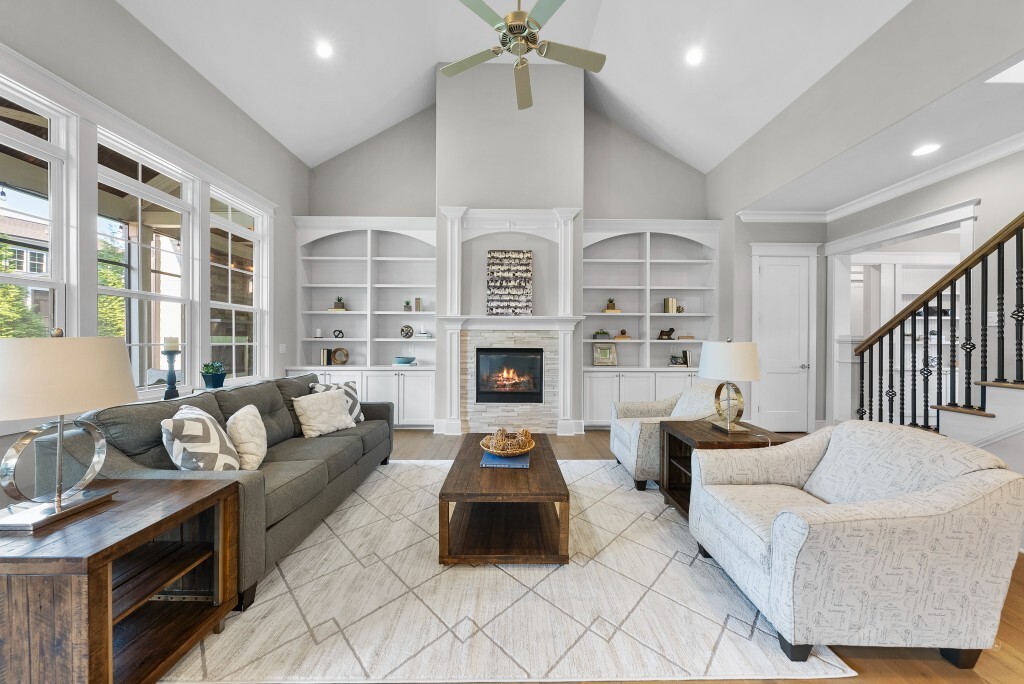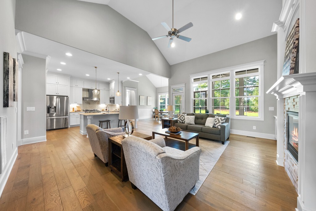 Step into luxury living in the Stonewater community of Wake Forest—an upscale enclave featuring custom-built homes on generous wooded lots. The exterior boasts stone accents, crisp architectural lines, and manicured landscaping, creating exemplary curb appeal. Inside, stunning hardwood flooring, crisp trim work, coffered ceilings, wainscoting, and built‑ins elegantly frame formal and casual space. The formal dining room impresses with abundant natural light, fine millwork, and chandelier lighting—perfect for hosting special gatherings. Also featured is a dedicated home office or study with serene views, ideal for remote work or quiet reflection. The expansive great room showcases built-ins flanking a gas fireplace, cathedral ceilings, and abundant natural light—designed to be the heart of the home. Nearby, a practical mudroom/drop‑zone with bench and cubbies offers smart storage solutions for busy family life. Experience seamless indoor-outdoor living with a screened porch that includes vaulted ceilings, ceiling fans, and an outdoor fireplace—overlooking a lush, private backyard perfect for year-round relaxing and entertaining. Within Stonewater, residents enjoy a wealth of amenities: a community pool, clubhouse, fully equipped fitness center, playground, and tranquil pond and greenway trails that connect throughout the neighborhood. The neighborhood offers easy access to: Major routes like US‑1, with commuting times to downtown Wake Forest (≈5 min), Raleigh (≈30 min), and RTP or RDU (≈30-35 min). Nearby attractions such as Falls Lake, E. Carroll Joyner Park, and nearby shopping/dining at Heritage and Wake Forest Crossing.
