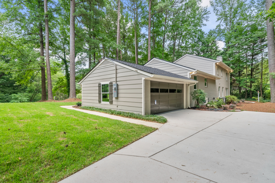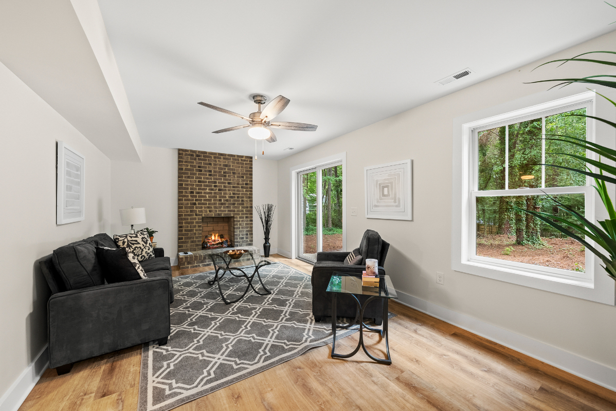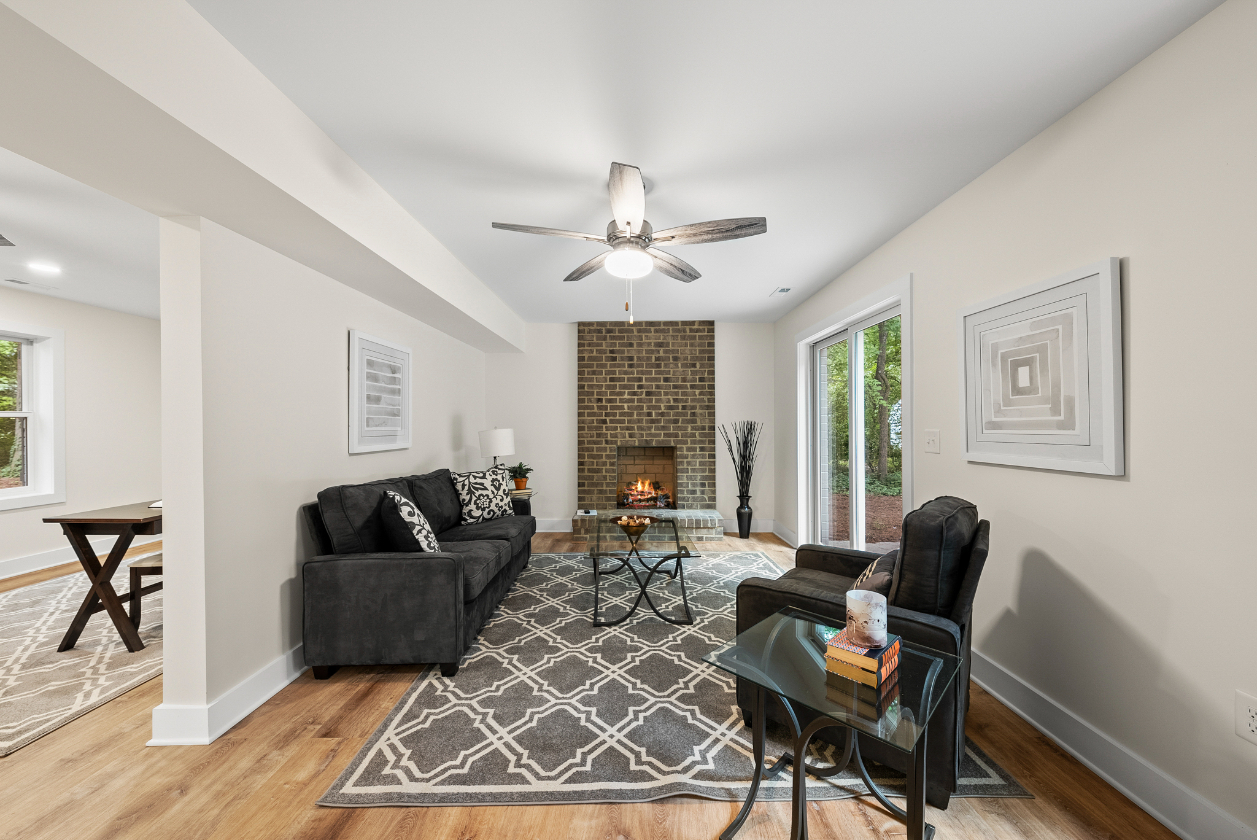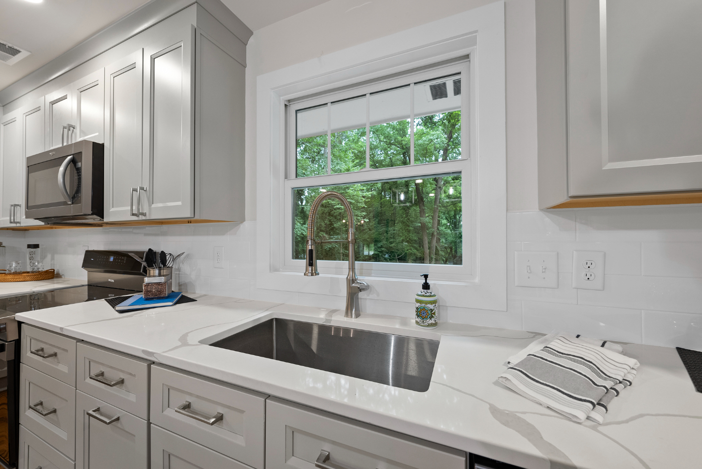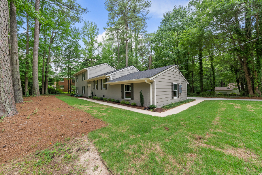 Amazing brick home in Laurel Hills that has been completely rebuilt with modern finishes, quality craftsmanship, and thoughtful design throughout. Every major component has been replaced—roof, windows, HVAC, plumbing, electrical, flooring, kitchen, and baths—offering the peace of mind of new construction with the charm of an established Raleigh neighborhood. A 1-year builder warranty is included for added confidence. Ideally located just minutes from Crabtree Valley Mall, Rex Hospital, I-440, the greenway trail system, the NC Museum of Art, and a wide variety of restaurants, grocery stores, and everyday conveniences, this home puts you close to everything while tucked away on a quiet, wooded street. The main level features a spacious living room and dining area with smooth flow into the fully renovated kitchen, which boasts all-new cabinetry, quartz countertops, stainless steel appliances, a tile backsplash, and a large center island perfect for prepping, dining, and entertaining. Upstairs you'll find three generous bedrooms and two full baths, including a private primary suite with an updated en-suite bath featuring new fixtures and timeless tile finishes. The lower level offers flexible space ideal for today's lifestyle—whether you need a second living area, home office, guest space, or playroom. It features a cozy den with a brick fireplace, a fourth bedroom or office, a half bath, and a large laundry/mudroom with additional storage. Set on a beautifully wooded .72-acre lot, this home provides privacy, space, and room to enjoy the outdoors year-round. This home truly offers the best of both worlds: a fully rebuilt, move-in-ready interior in one of Raleigh's most convenient and desirable locations.