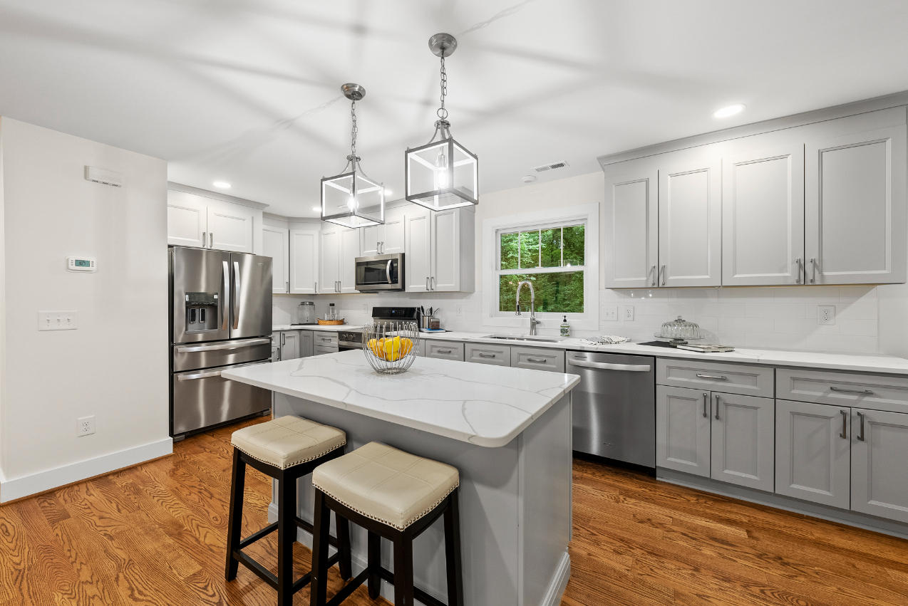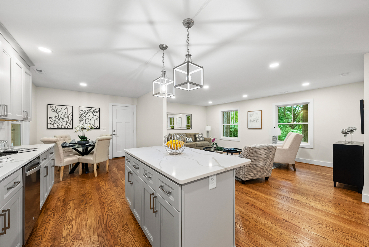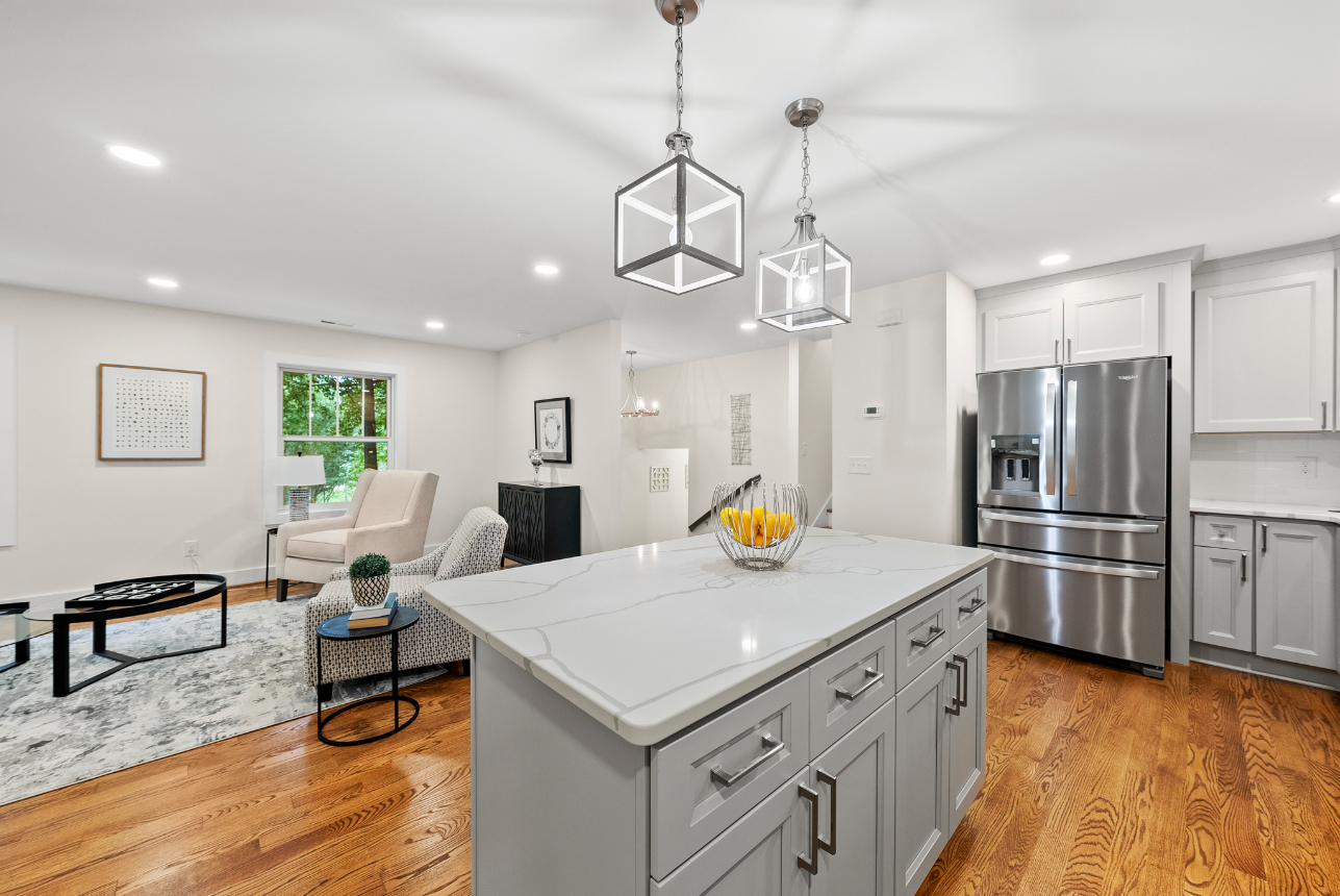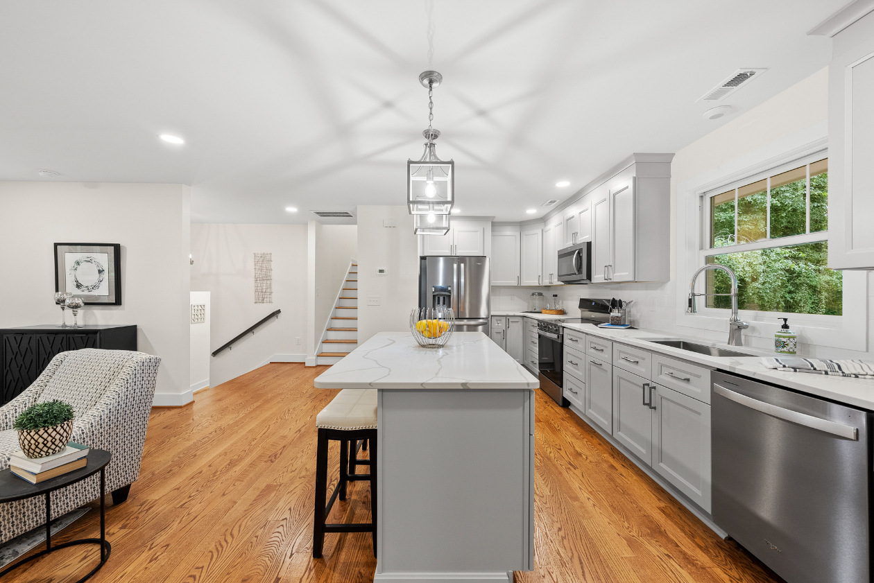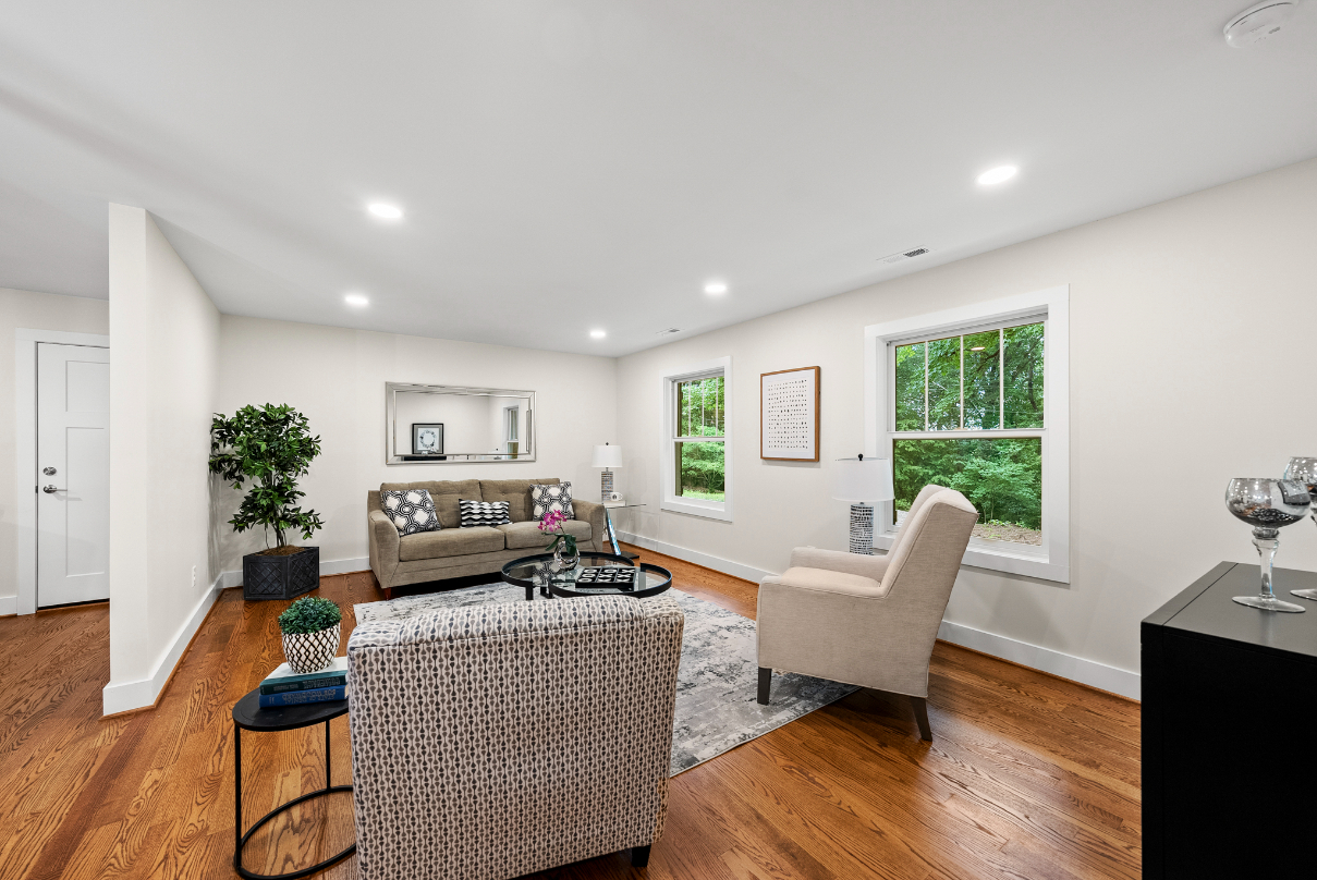 Amazing brick home in Laurel Hills that has been completely rebuilt with modern finishes, quality craftsmanship, and thoughtful design throughout. Every major component has been replaced—roof, windows, HVAC, plumbing, electrical, flooring, kitchen, and baths—offering the peace of mind of new construction with the charm of an established Raleigh neighborhood. A 1-year builder warranty is included for added confidence. Ideally located just minutes from Crabtree Valley Mall, Rex Hospital, I-440, the greenway trail system, the NC Museum of Art, and a wide variety of restaurants, grocery stores, and everyday conveniences, this home puts you close to everything while tucked away on a quiet, wooded street. The main level features a spacious living room and dining area with smooth flow into the fully renovated kitchen, which boasts all-new cabinetry, quartz countertops, stainless steel appliances, a tile backsplash, and a large center island perfect for prepping, dining, and entertaining. Upstairs you'll find three generous bedrooms and two full baths, including a private primary suite with an updated en-suite bath featuring new fixtures and timeless tile finishes. The lower level offers flexible space ideal for today's lifestyle—whether you need a second living area, home office, guest space, or playroom. It features a cozy den with a brick fireplace, a fourth bedroom or office, a half bath, and a large laundry/mudroom with additional storage. Set on a beautifully wooded .72-acre lot, this home provides privacy, space, and room to enjoy the outdoors year-round. This home truly offers the best of both worlds: a fully rebuilt, move-in-ready interior in one of Raleigh's most convenient and desirable locations.