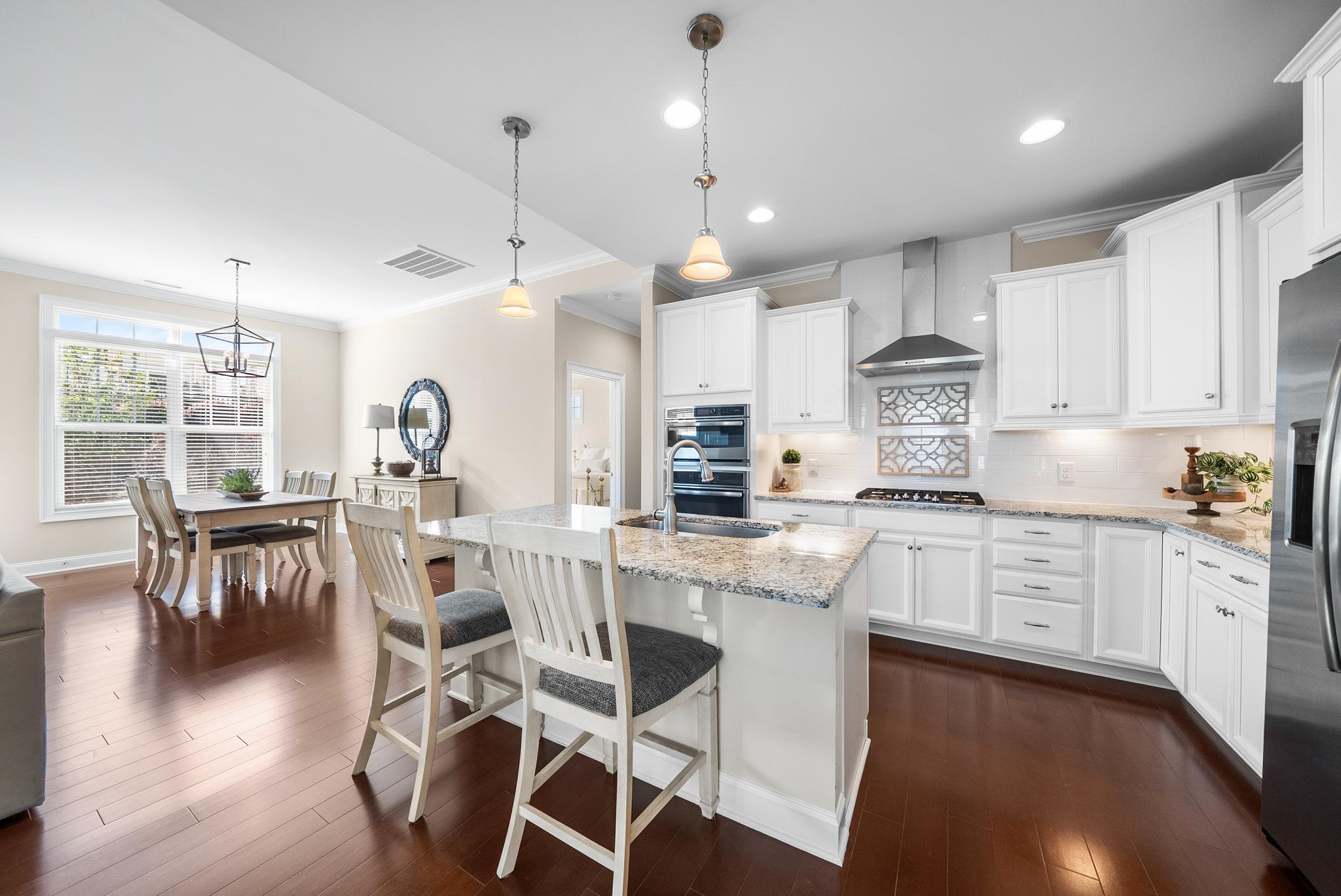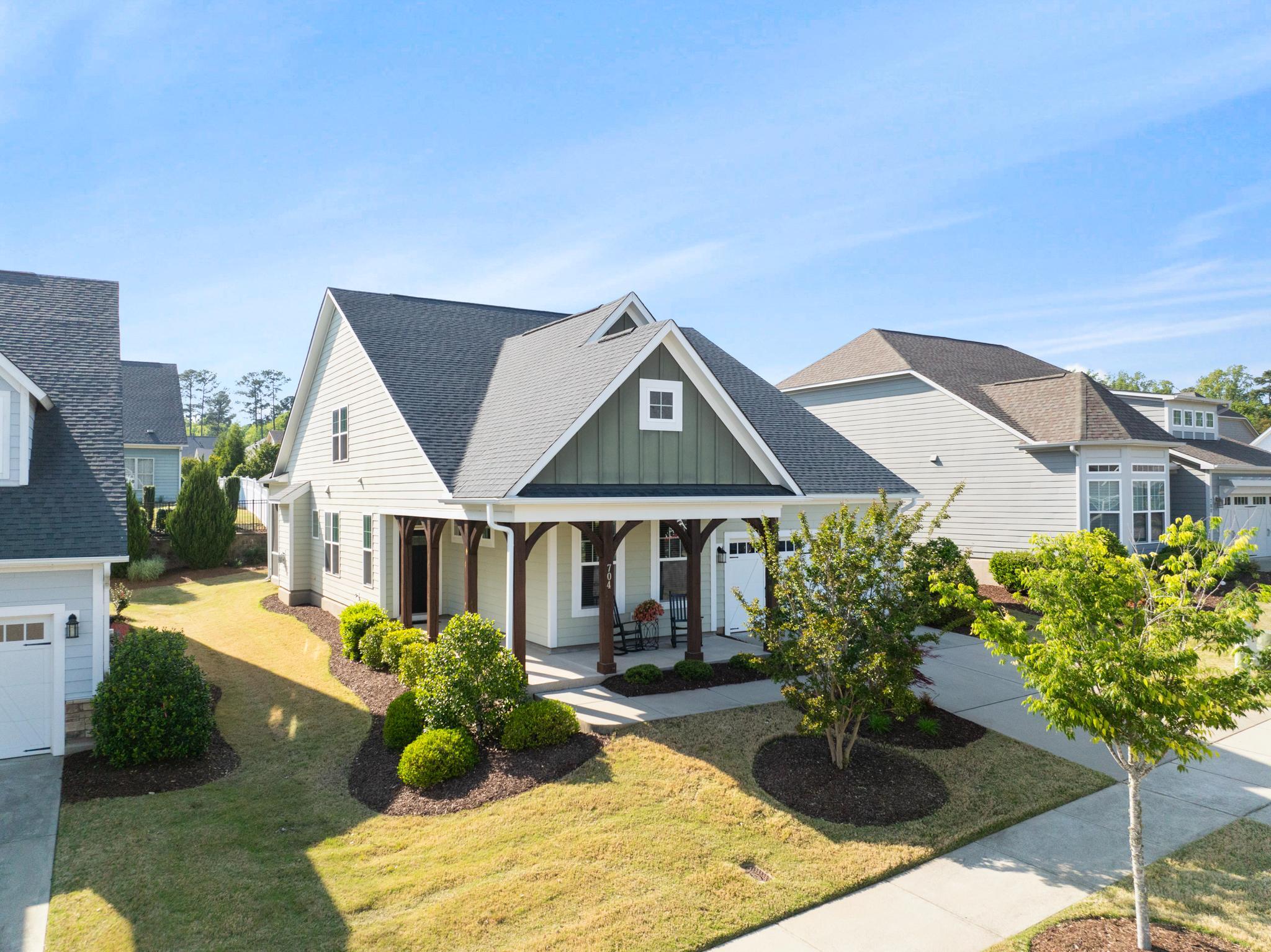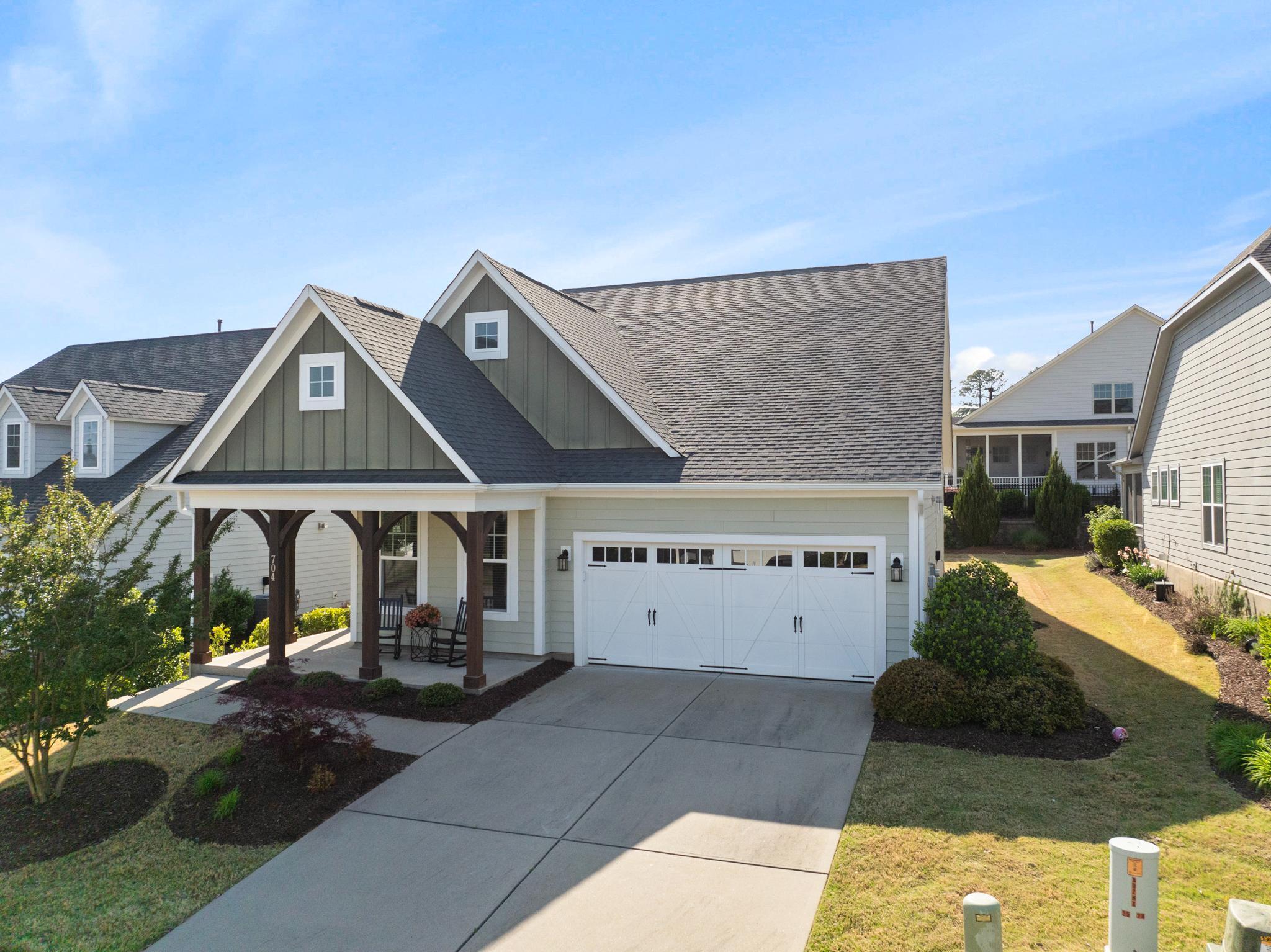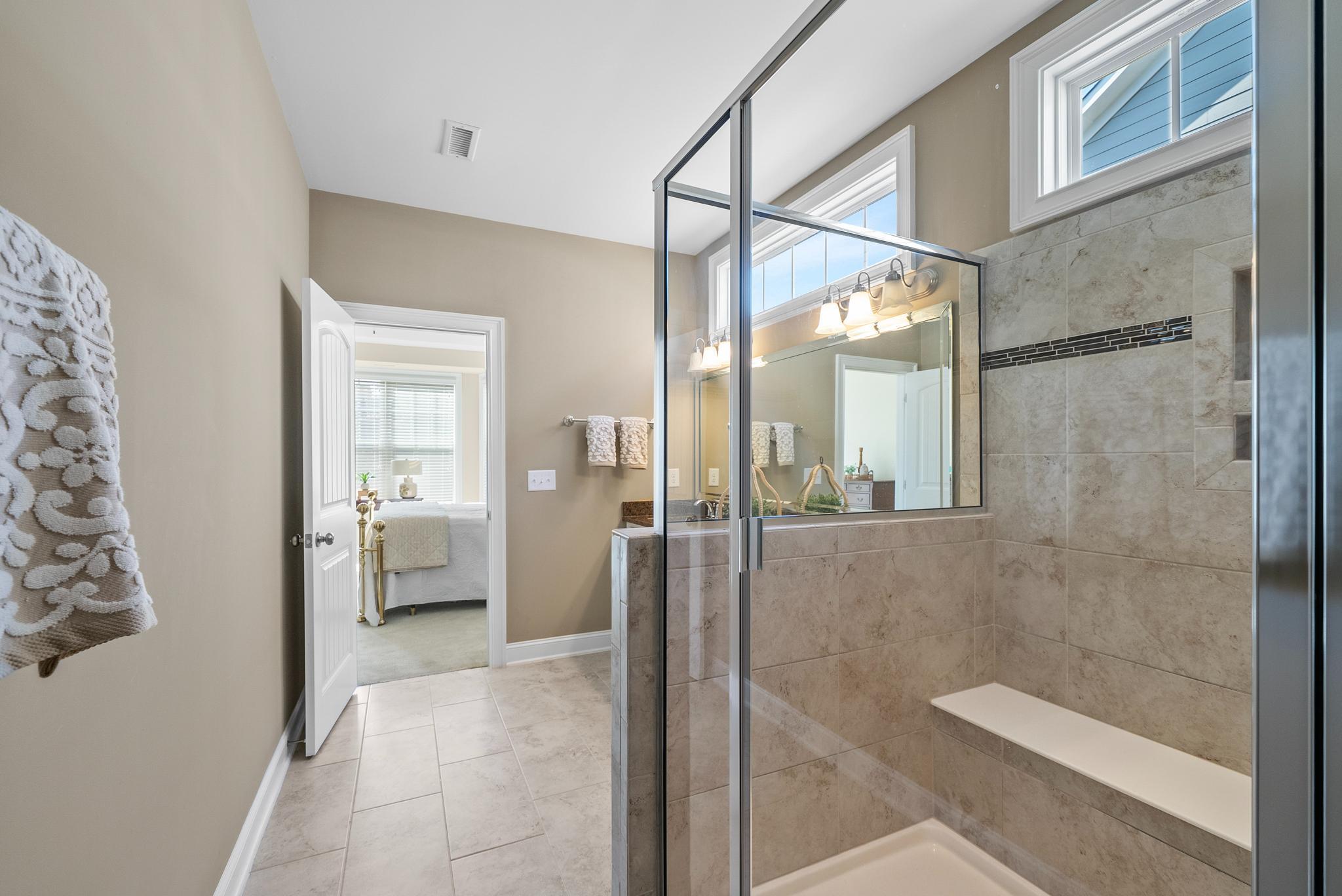 Beautiful home in the highly sought-after Traditions neighborhood, offering resort-style amenities including a community pool and clubhouse. Designed to live like a ranch, this home features a thoughtfully laid-out main level with an open floor plan perfect for everyday living and entertaining. The spacious kitchen is the heart of the home, showcasing granite countertops, stainless steel appliances, ample cabinetry, and a large island that opens seamlessly to the dining and living areas. A dedicated office with elegant French doors provides the perfect work-from-home setup. The generous primary suite on the main level offers a private retreat with an ensuite bathroom featuring a spacious shower with bench and a large walk-in closet. Upstairs, you'll find a versatile bedroom with ensuite bathroom, ideal for guests, a private suite, or additional living space. Find ample storage in the floored attic space! Enjoy outdoor living year-round on the screened-in porch overlooking the backyard, perfect for relaxing or entertaining!