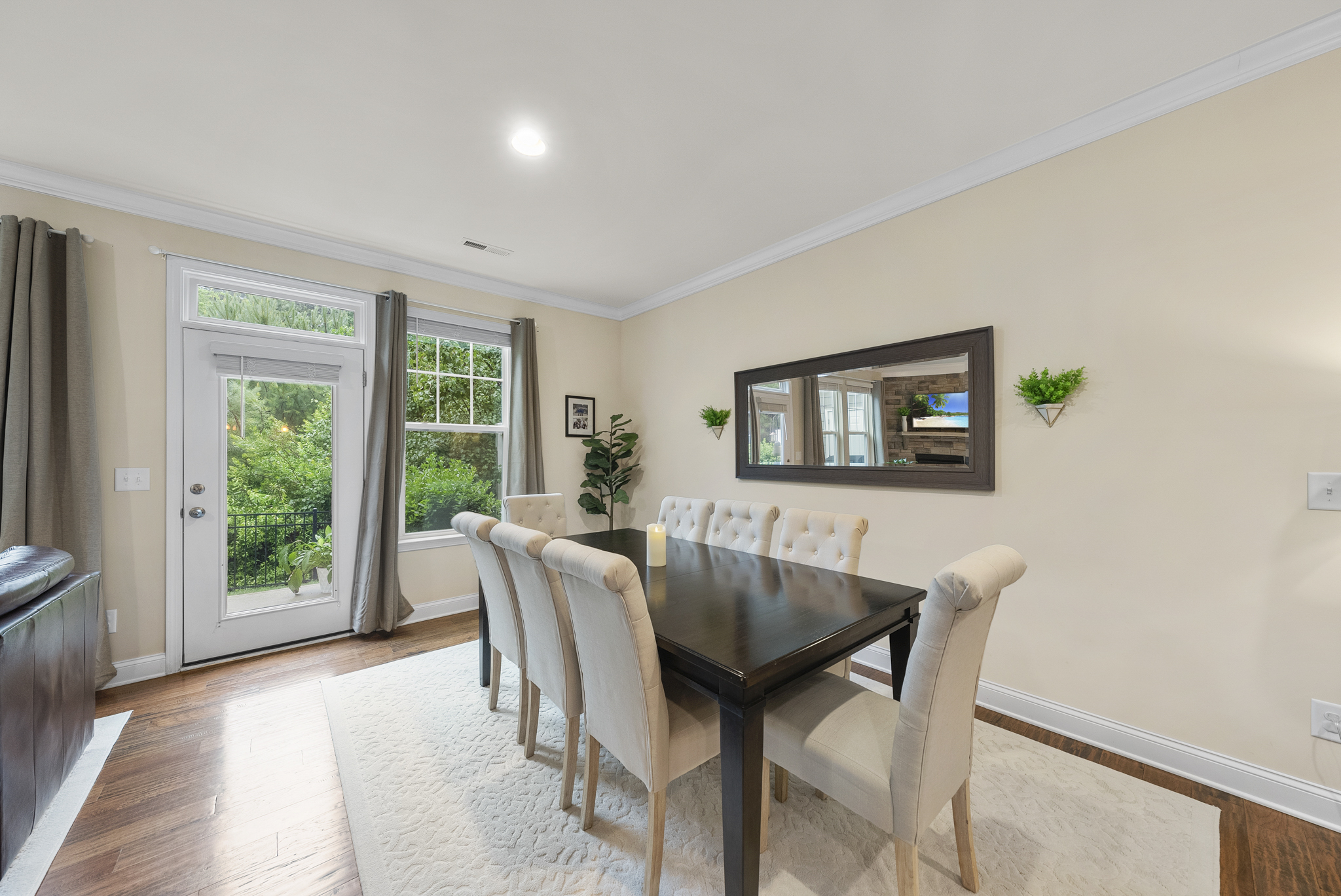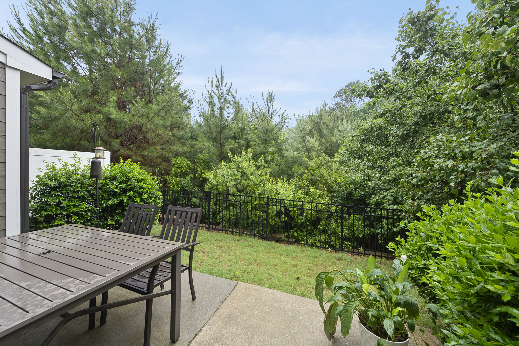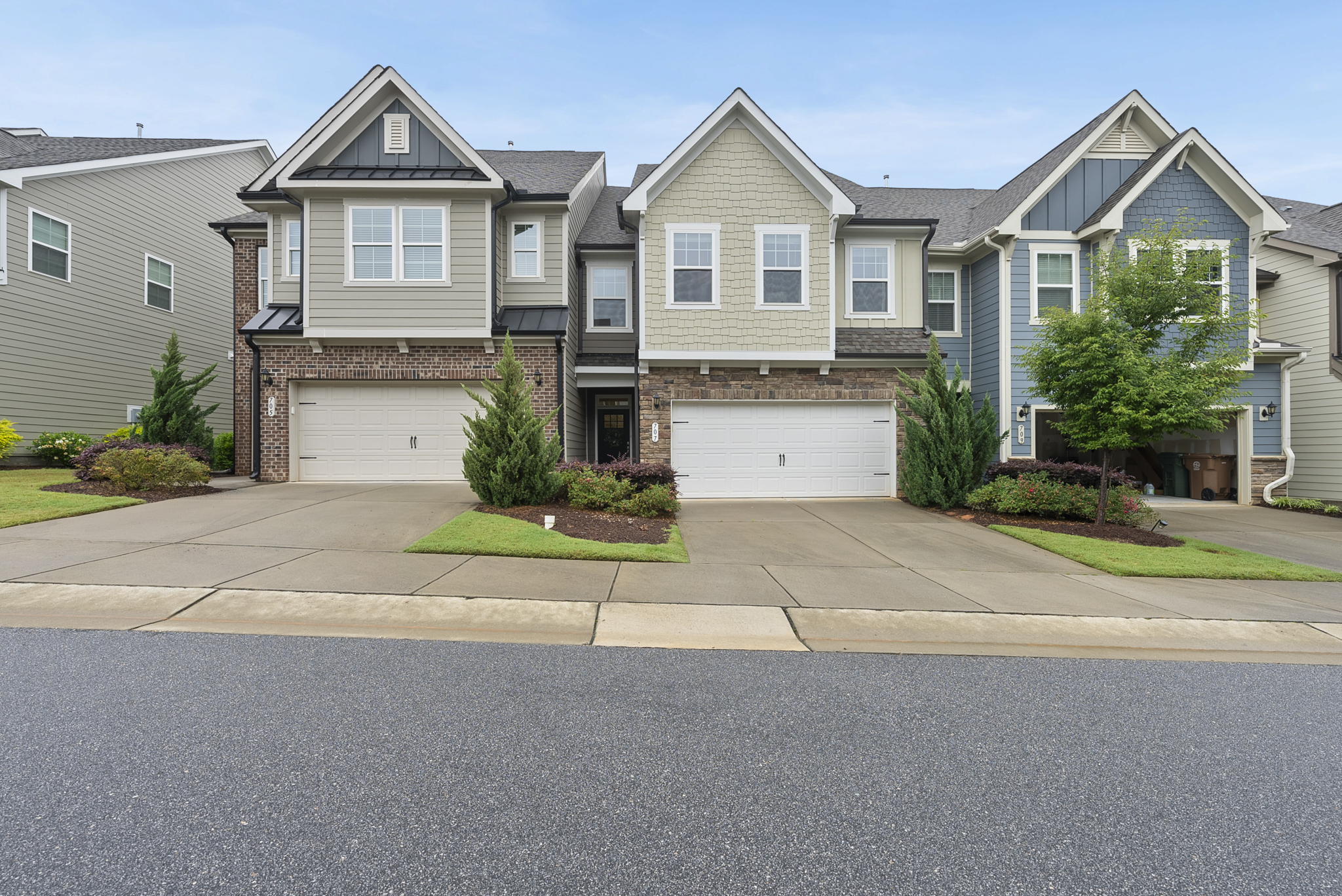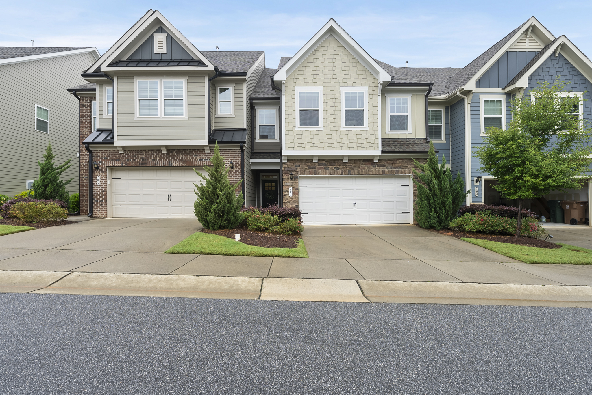 Welcome to this beautiful 3-bedroom, 2.5-bath townhouse with bonus room and 2-car garage! Come inside and notice the beautiful hardwoods, crown molding, and an open layout. The kitchen offers a large center island, granite countertops, gas range, and stainless steel appliances. The spacious family room has abundant natural light and a stone gas-log fireplace. The dining area is perfect for guests and easily fits a full-size table. Rounding out the first floor, there is a drop zone/mudroom and a convenient half bath. Upstairs, the large primary suite boasts tray ceilings, big windows, and two walk-in closets. The large primary bath includes double vanities, a glass walk-in shower, and a private water closet. Two additional bedrooms feature ample closet space and share a full bath with dual vanities. A laundry room and a spacious bonus room complete the second floor. Out back, relax on the patio that backs up to a wooded area for added privacy. Additionally, there is an outdoor storage room attached. This amazing propertyy is in a great location near shopping, dining, entertainment and major Triangle thoroughfares! Don't miss this well kept and comfortable home!