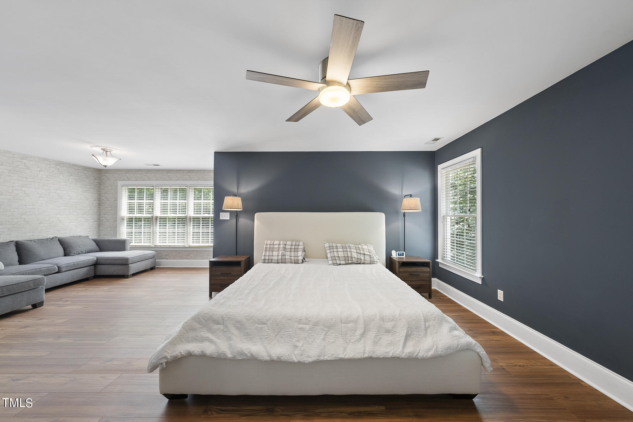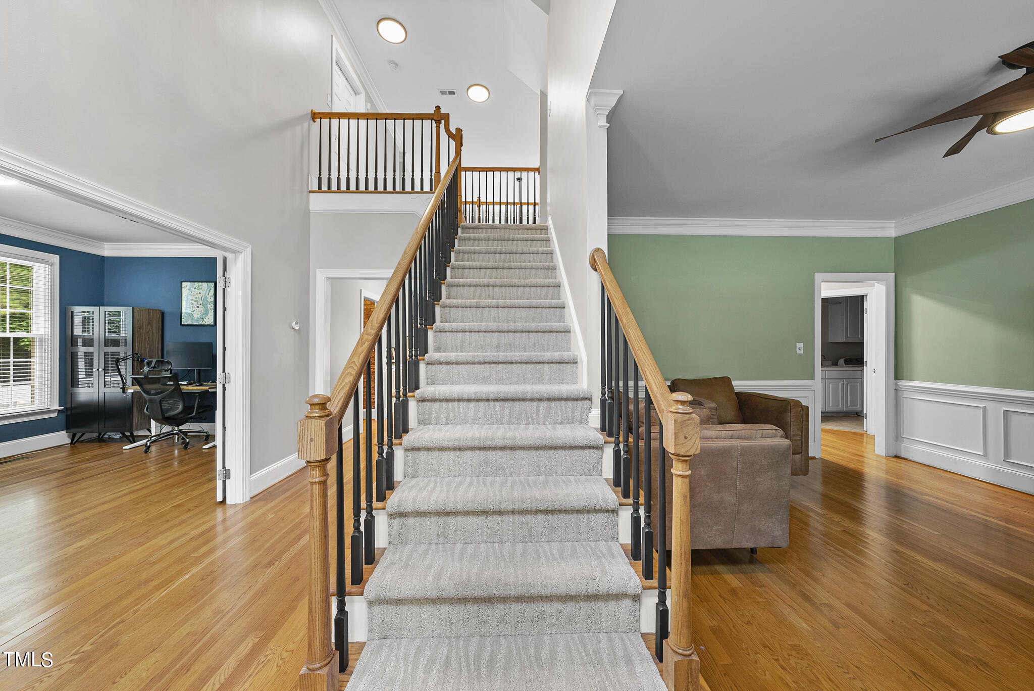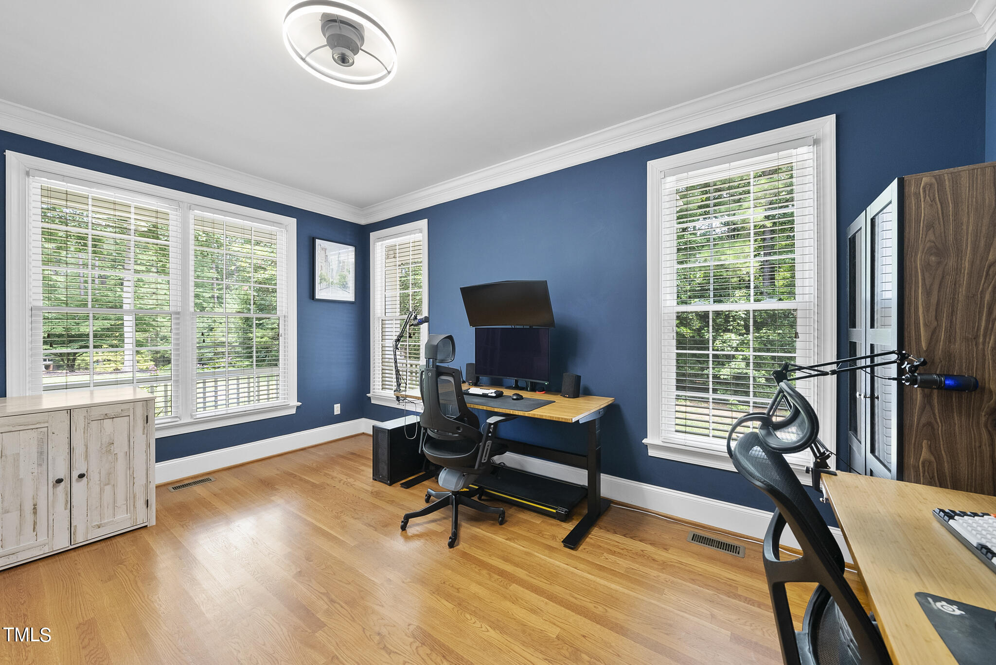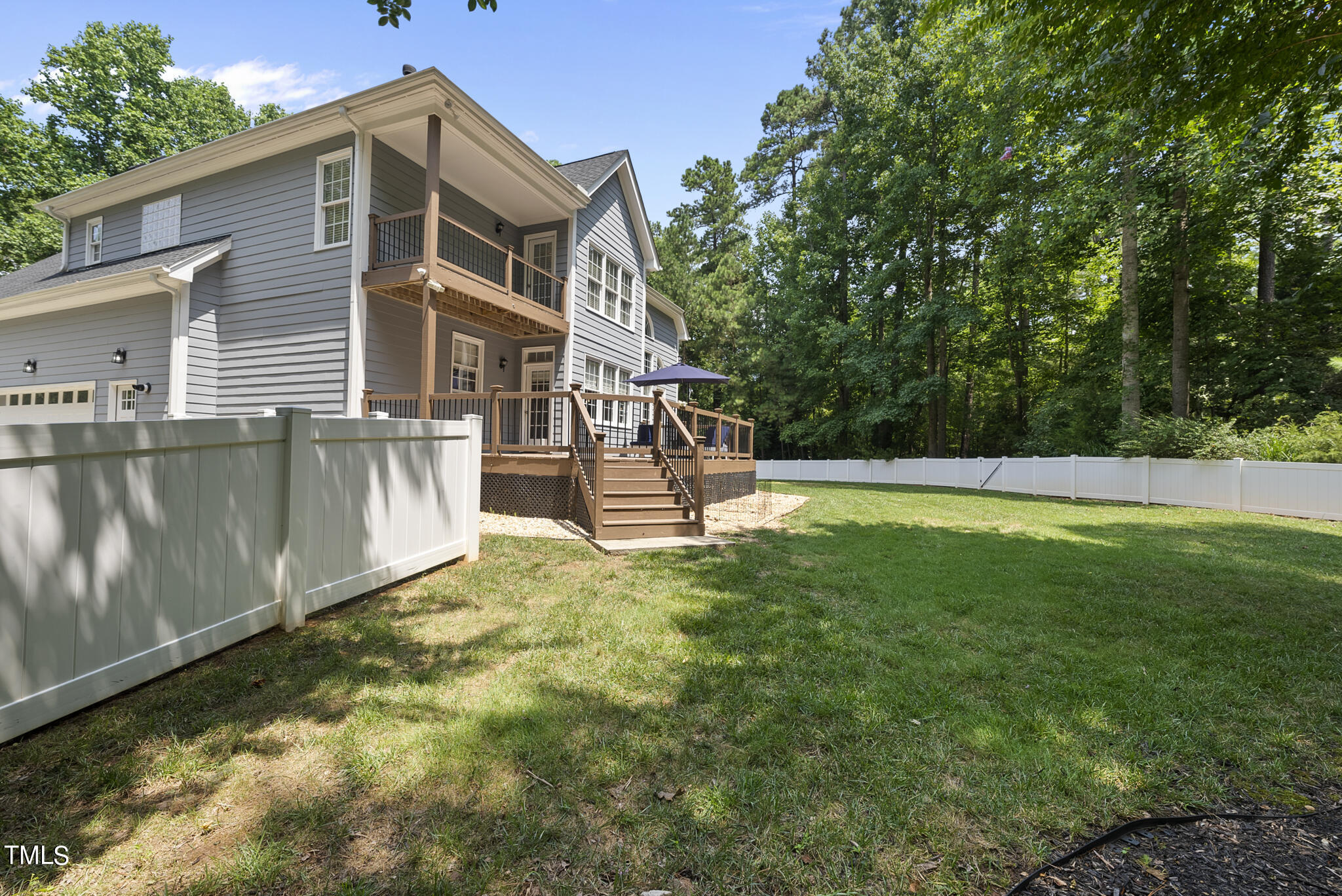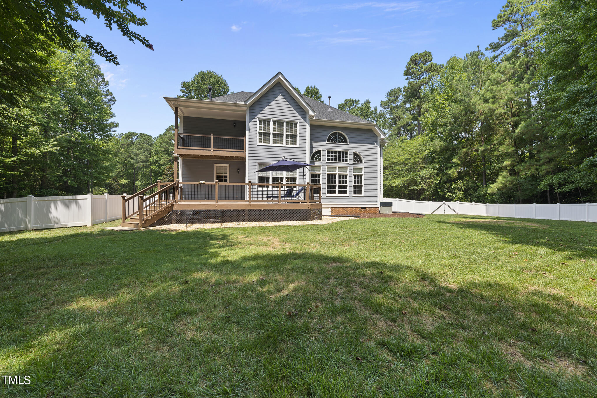 Charming 4-Bedroom Home with side entry 3 car garage on 2+ Acres in Waterfall Plantation! Welcome to this gorgeous and impeccably maintained home situated on over 2 acres in the highly desirable Waterfall Plantation community. This beautiful residence, which features 4 bedrooms and 3.5 baths, also boasts a new roof added in 2020. The first floor boasts a large, light-filled office, elegant hardwood flooring, and crown molding. The dining room offers classic wainscoting and plenty of natural light. The two-story family room impresses with a grand bank of floor-to-ceiling windows, a cozy gas fireplace, built-ins, and a view of the catwalk above. It opens to the chef's kitchen that features granite countertops, a wet bar, a bar counter with seating, stainless steel appliances, and a bright breakfast nook that leads to a partially covered deck. Additional highlights include a large laundry room with ample storage and counter space, a tankless water heater, and a convenient powder room. Upstairs, the luxurious primary suite offers a spacious bedroom with a separate sitting area and access to a private covered deck, along with a beautiful en-suite bath with separate vanities, a stand alone soaking tub, a tiled and glass walk-in shower, and a large walk-in closet. Bedroom 2 includes a private en-suite bath, while Bedrooms 3 and 4 share a Jack-and-Jill bath, with Bedroom 4 which can also serve as a versatile bonus room. Outside you will find a 3 car side load garage with plenty of driveway parking. Enjoy a spacious deck, a large fenced backyard with mature trees, and plenty of space for relaxation and privacy. This home is a must see!