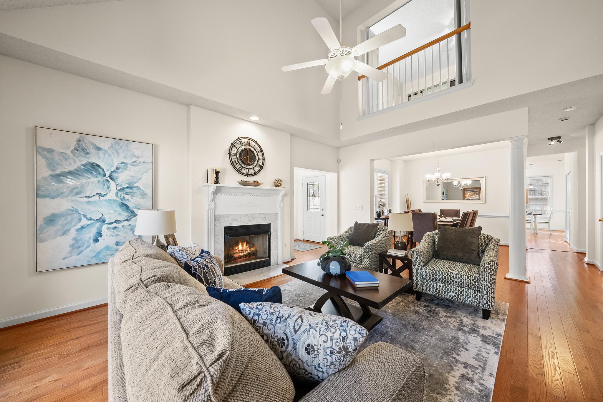 The spacious family room features soaring ceilings, a cozy fireplace with a custom mantle, and triple-pane French doors that fill the home with natural light and open to serene backyard views. Designed for entertaining, the family room flows seamlessly into the dining area. The first-floor owner’s suite offers dual closets and a spa-like en suite with dual vanities and a walk-in tile shower with bench and dual shower heads. Upstairs, two additional bedrooms share a Jack-and-Jill bath, while a versatile loft with an entire wall of closets overlooks the family room. Step onto the back deck to enjoy private outdoor living, complemented by a generous side yard ideal for added privacy and play.